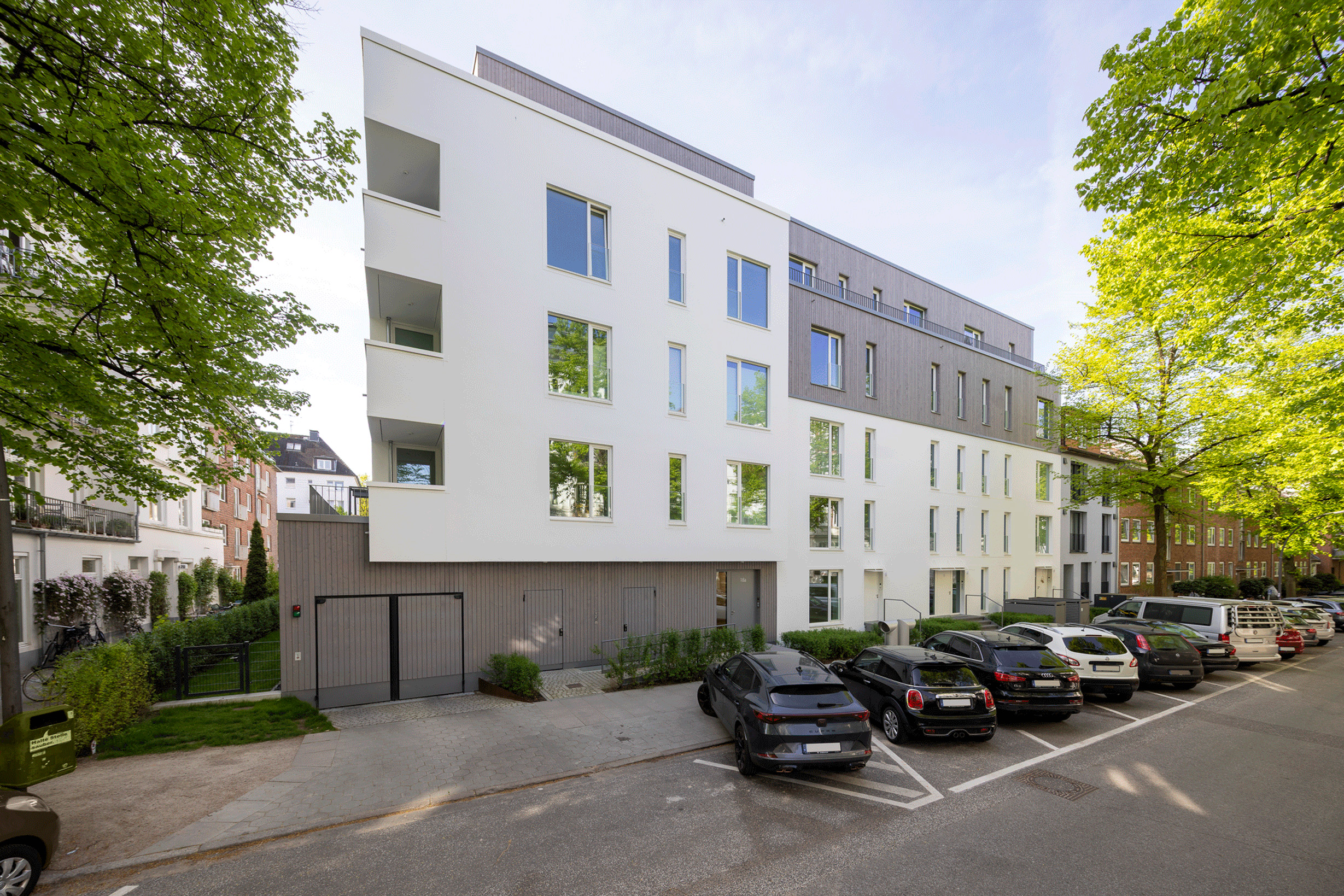 Auf einem Grundstück in Winterhude, unweit der Alster, befand sich ein 1964 errichtetes Wohnhaus im typischen Rotklinker-Stil mit drei Vollgeschossen und einem Dachgeschoss. Das Gebäude war in die Jahre gekommen und wurde im Rahmen einer umfassenden Modernisierung neu konzipiert. Aus ursprünglich 13 Wohneinheiten entstanden 17 elegante, teils als Maisonette ausgeführte Wohnungen.